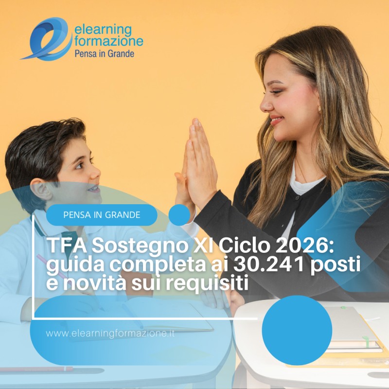 Trasforma la tua aspirazione in realtà professionale. Scegli la qualità e l'esperienza di Elearning Formazione per conquistare il tuo posto nel TFA Sostegno XI Ciclo.